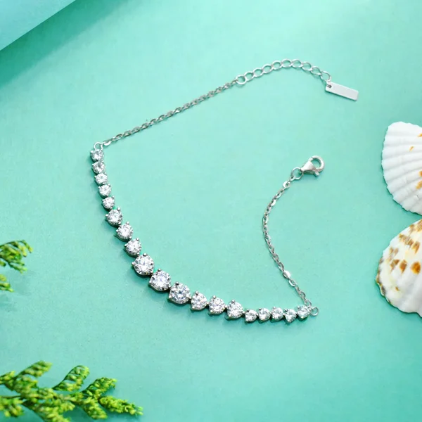Simple yet stunning, this modern diamond string bracelet is designed for effortless elegance. With a delicate row of synthetic diamonds on a sleek 16 cm chain, it brings subtle sparkle to your wrist. Lightweight and refined, this piece is perfect for stacking or wearing solo as a chic everyday accessory.