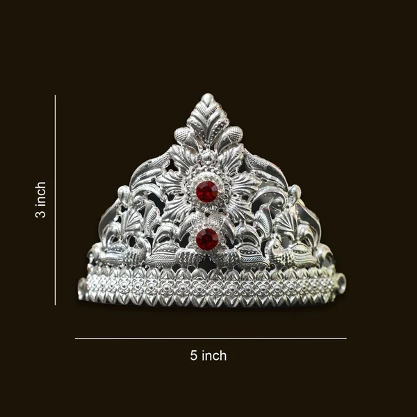 925 Pure Silver Mukut with Red Stones – 3x5 Inch Handcrafted Crown for Deity Idols
