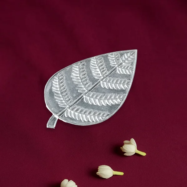 Handcrafted Silver Vidyach Paan Plate – Engraved Leaf Design