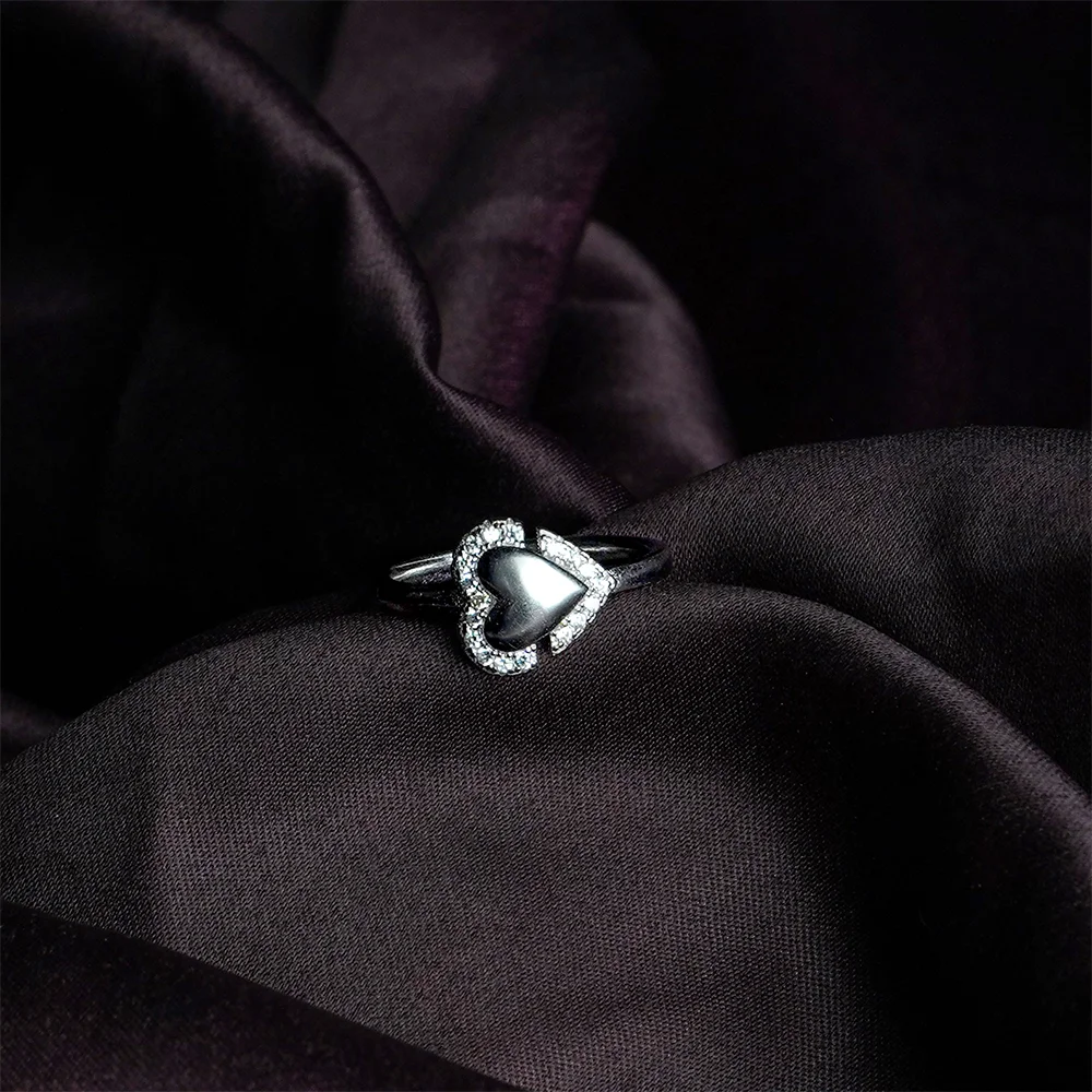 This delicate ring features a heart where one half is smooth, shiny metal and the other half sparkles with tiny, clear stones. It's a sweet, modern design perfect for a promise or a daily touch of romance.