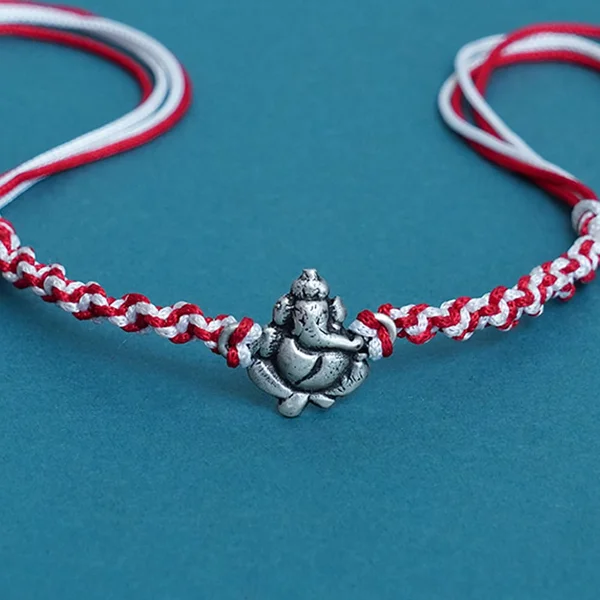 Oxidised 925 Sterling Silver Ganesha Rakhi for Brother