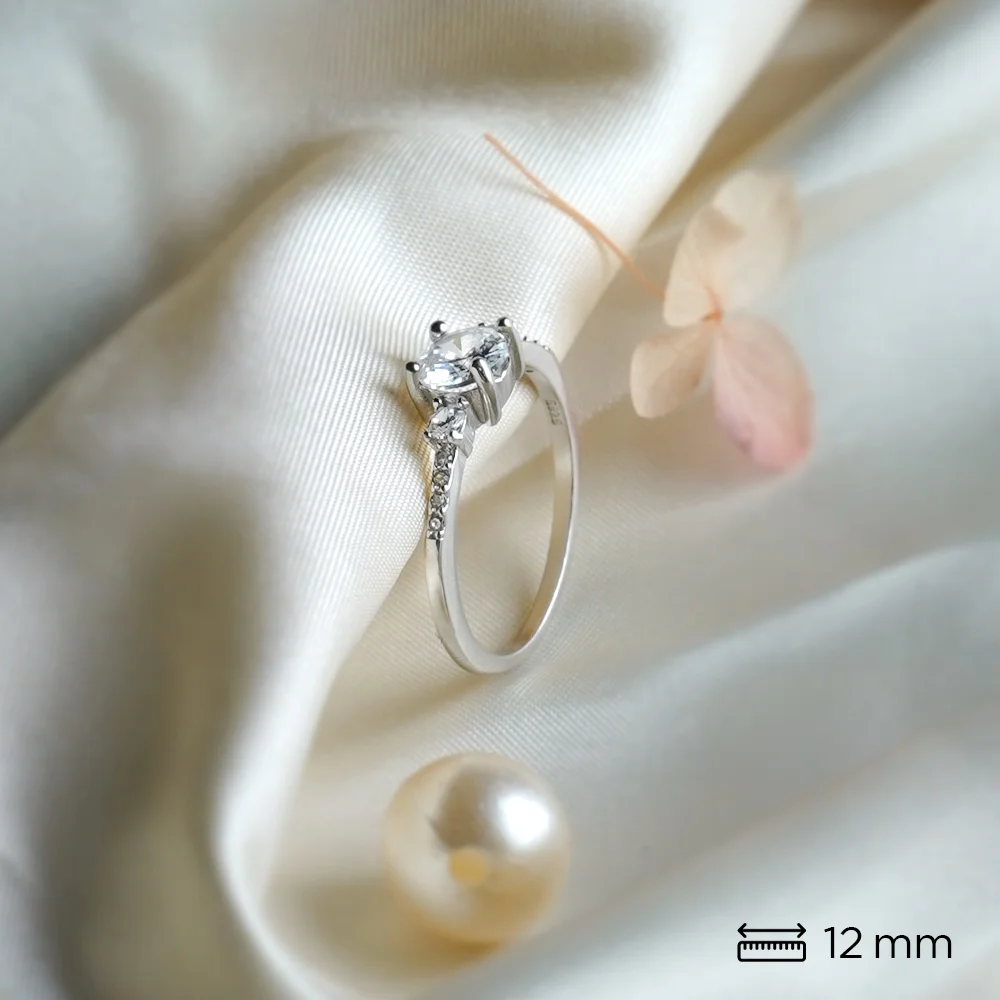 Celebrate timeless romance with this Sterling Silver Three-Stone Ring, a symbol of the past, present, and future. Featuring a central round stone flanked by two smaller accents and pavé-set stones along the band, it radiates elegance and sparkle. Perfect as a promise ring, engagement-style ring, or a refined right-hand piece, this ring combines sophistication with everyday wearability.